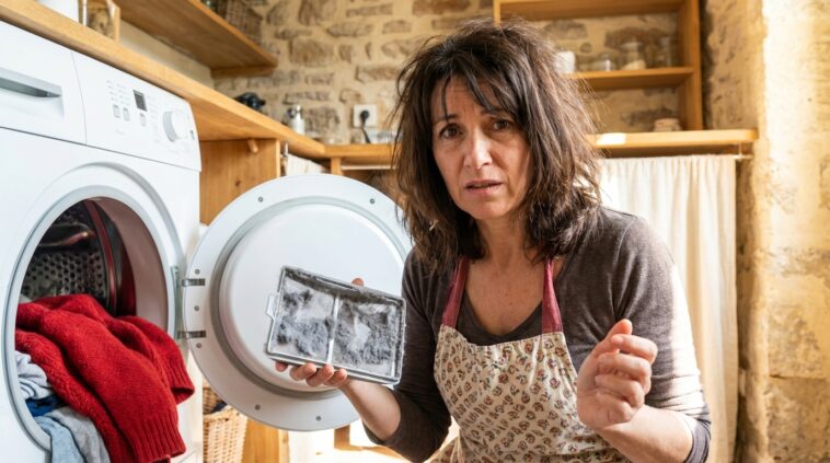 Au-delà de la charge du tambour, un autre facteur technique influence considérablement l’efficacité énergétique de votre appareil : le filtre à peluches. Cette petite grille, souvent négligée, joue un rôle central dans la régulation du flux d’air. À chaque utilisation, des milliers de microfibres se détachent des vêtements sous l’effet du frottement et de la chaleur, venant obstruer progressivement cette barrière. Une saturation, même partielle, de ce filtre crée une résistance qui empêche l’évacuation de l’air humide, forçant le sèche-linge à compenser en chauffant davantage et plus longtemps. Un filtre encrassé réduit l’efficacité de l’appareil de 25 %, transformant une machine performante en un gouffre énergétique. Le nettoyage de ce filtre ne doit donc pas être une option réalisée une fois par mois, mais un automatisme systématique après chaque séchage.
