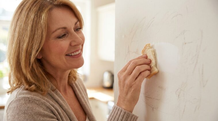 Au-delà des pièces précieuses, la mie de pain excelle dans les tâches quotidiennes moins spectaculaires mais tout aussi frustrantes. Les traces de crayon graphite sur les murs clairs – une plaie pour ceux qui vivent avec des enfants ou qui ont besoin d’espace pour noter des idées – disparaissent presque comme par magie sous une boule de mie légèrement roulée. L’amidon naturel du pain agit précisément comme une gomme douce, sans laisser de résidu gras ou brillant comme le feraient certains produits chimiques. Cette simplicité fait toute la différence : aucun risque de créer une tache, aucune odeur désagréable, aucun résidu toxique.