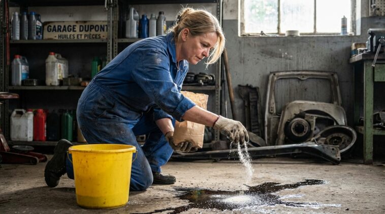 Il n’y a rien de plus agaçant que de découvrir une tache d’huile sombre et persistante sur le sol du garage lorsqu’on s’apprête à entreprendre le grand nettoyage de printemps, au tout début du mois de mars. Face à cette souillure qui résiste aux coups de balai classiques, beaucoup se tournent vers des bidons de produits industriels aux promesses séduisantes mais à la composition discutable. Pourtant, il existe une alternative minérale efficace permettant de faire disparaître ces marques disgracieuses sans polluer l’air intérieur. Cette méthode, inspirée des savoir-faire d’autrefois, mise sur l’action mécanique de poudres naturelles plutôt que sur des réactions chimiques agressives. Ce geste simple permet de préserver la qualité de l’air et d’obtenir un résultat visuel impeccable, que votre sol soit en béton ou en carrelage.